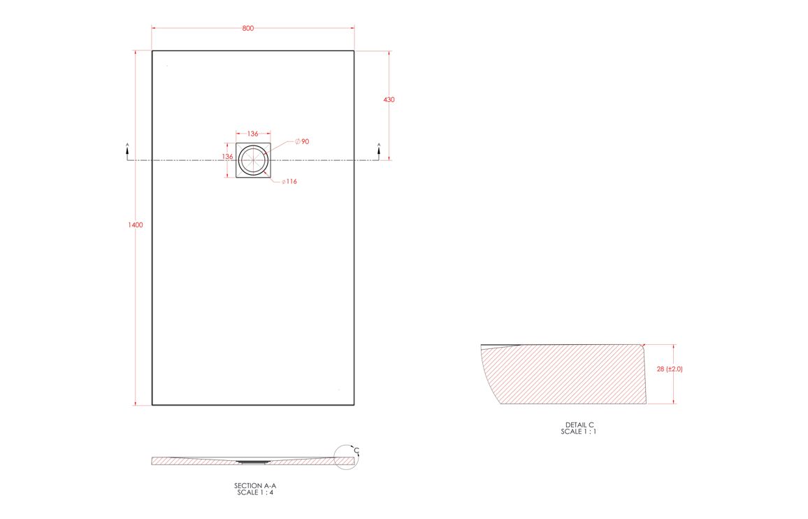 Dimensions: H 25 x W 1400 x D 800mm
