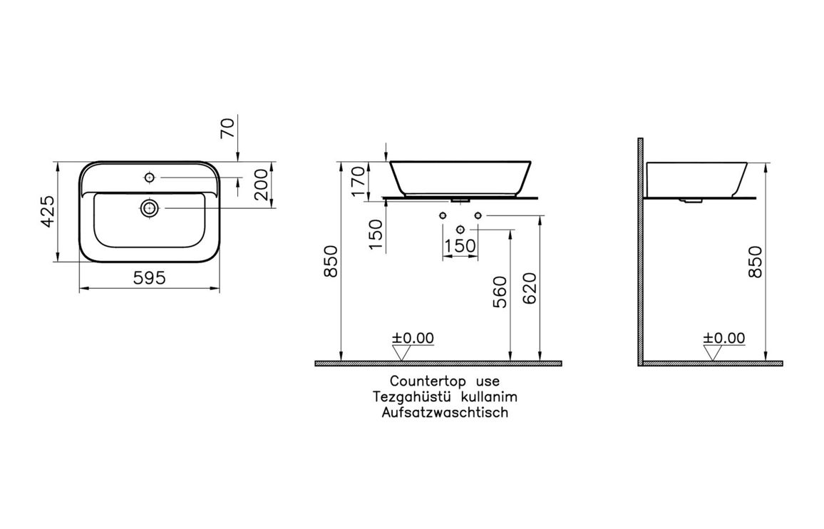 Dimensions: H 165 x W 600 x D 425mm